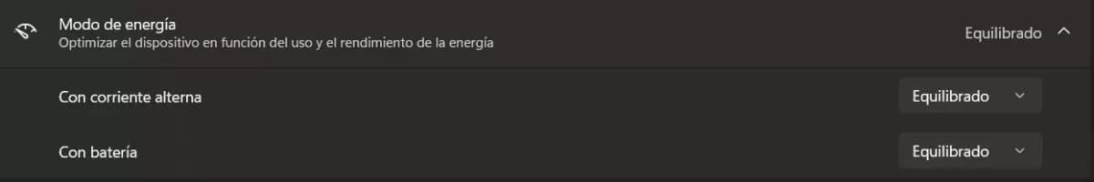- Cambia Máximo rendimiento a Equilibrado o Mejor eficiencia energética.