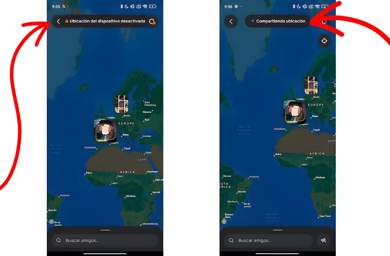 Si ves Instagram está compartiendo tu ubicación en tiempo real y quieres desactivar dicha opción, debes entrar en el mapa. Una vez dentro, haz clic en el mensaje de «Compartiendo ubicación». De este modo, podrás seleccionar con quién quieres compartirlo: