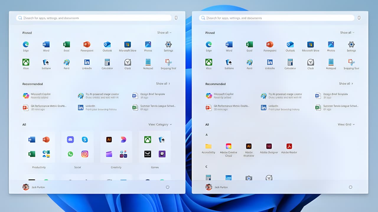 La tecnológica afirma que están optimizando al máximo el menú de Inicio para que se pueda adaptar a cualquier pantalla, independientemente de su tamaño. En dispositivos con paneles más grandes se podrán distinguir hasta 8 columnas de aplicaciones ancladas e incluso 6 recomendaciones y otras 4 columnas de categorías. Sin embargo, en portátiles o monitores de pulgadas reducidas, solamente se apreciarán 6 columnas de aplicaciones, 4 recomendaciones y 3 columnas de categorías.