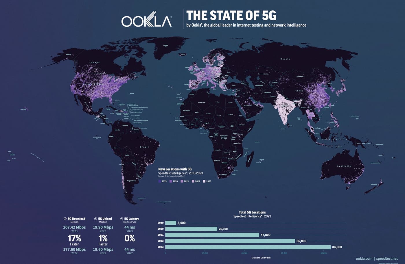 El 5G todavía no está en su punto más alto, al menos por ahora. Todavía se puede ver como esta conexión de quinta generación no ofrece las velocidades que se esperaban, especialmente en subida, además de una latencia que, precisamente, no es tan baja como nos gustaría. Todo esto según el último estudio de Ookla con los datos recopilados de Speedtest durante todo el 2023.