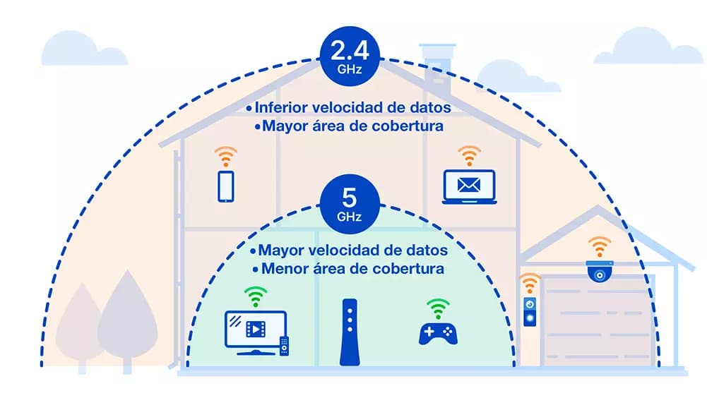 A no ser que tu router sea una antigualla, debería venir con la opción de usar dos bandas de frecuencia distintas, una de 2,4 GHz y otra de 5GHz. Cada una va a ser mejor en un caso determinado. La de 2,4 GHz, la estándar, ofrece una velocidad normal y es buena a la hora de atravesar obstáculos, como paredes, pero es peor en cuanto a sortear interferencias emitidas por otros dispositivos, como microondas, electrodomésticos inteligentes o teléfonos inalámbricos. Por el contrario, la banda de 5GHz va a ser más rápida, con mayor capacidad de ignorar interferencias, pero no es buena cuando la distancia entre el router y el dispositivo es demasiado grande, o sea, que es útil sobre todo en distancias cortas.