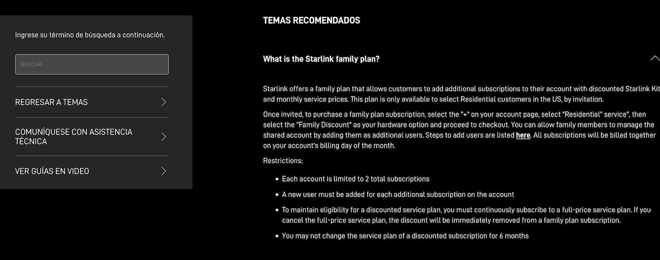 De momento, este plan familiar ha salido a la luz en Estados Unidos, donde Starlink suele poner en marcha sus iniciativas primero antes de llevarlas a otros mercados. Vemos la información incluida ya en el apartado de Asistencia al cliente de su web, por lo que se puede entender que la empresa está preparándose para el inminente lanzamiento del servicio.