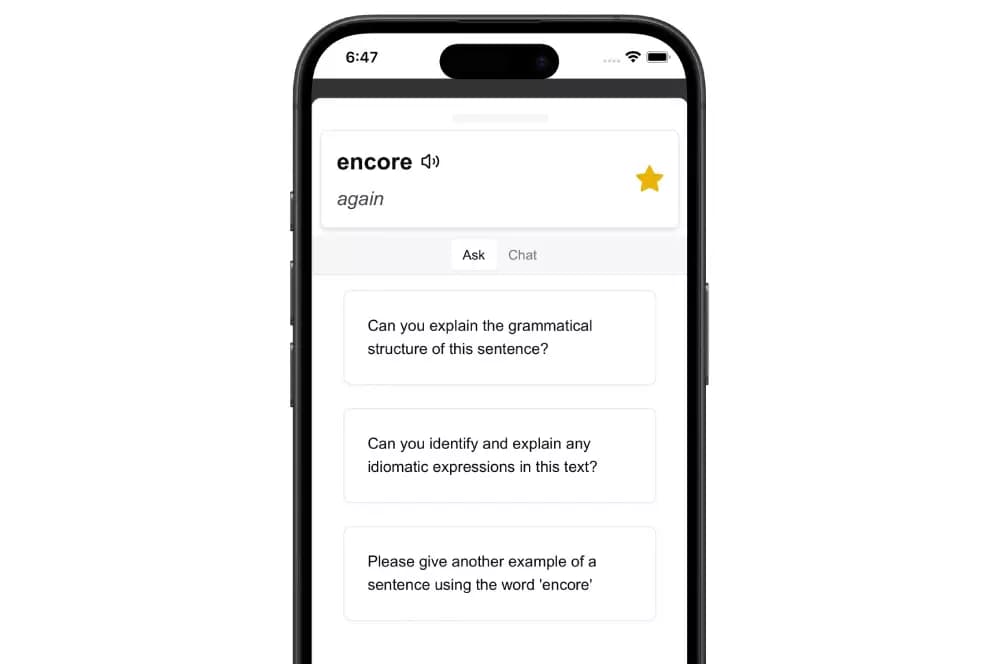 Además, cuenta con un constructor de vocabulario inteligente que permite guardar palabras y frases clave, así como obtener análisis detallados de oraciones. Para reforzar el aprendizaje, ofrece tarjetas de repetición espaciada con frases extraídas automáticamente de los videos. Es compatible con más de 25 idiomas, incluyendo inglés, español, francés, alemán, japonés y chino.