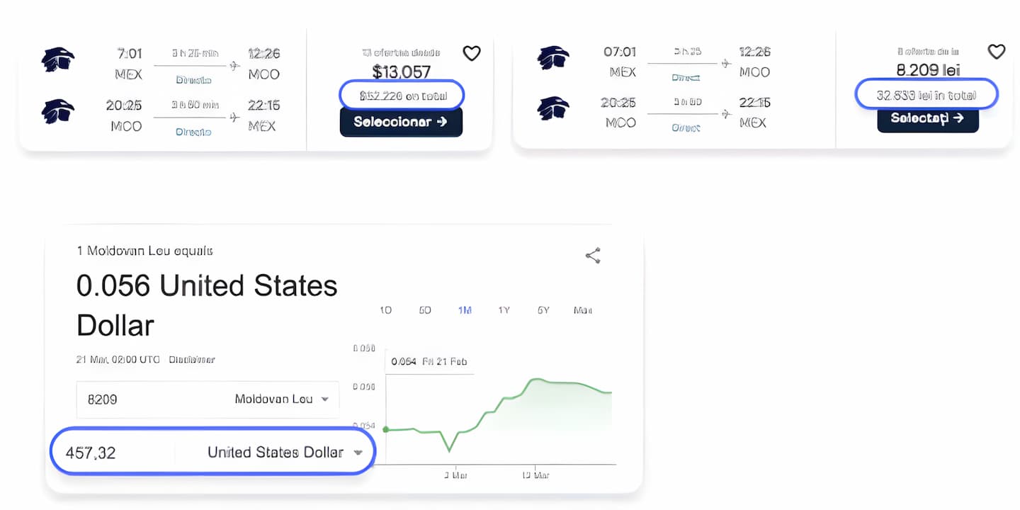Por ejemplo, la compañía descubrió que una persona de cuatro personas que quisiese viajar de Ciudad de México a Dinseyland (Orlando, EEUU) llegarían a ahorrar hasta 700 euros en sus vuelos si usasen una VPN de Moldavia. De 2.334,50 euros sin usar NordVPN pasarían a 1.644,36 euros. Es decir, conseguirían un descuento del 29,5%.