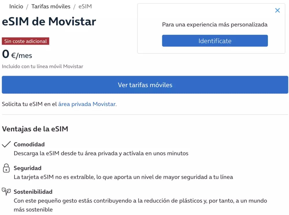 - Puedes pedir la eSIM en una tienda física, con un coste de 5 € si haces un cambio de SIM a eSIM o de forma gratuita si se trata de un alta nueva.