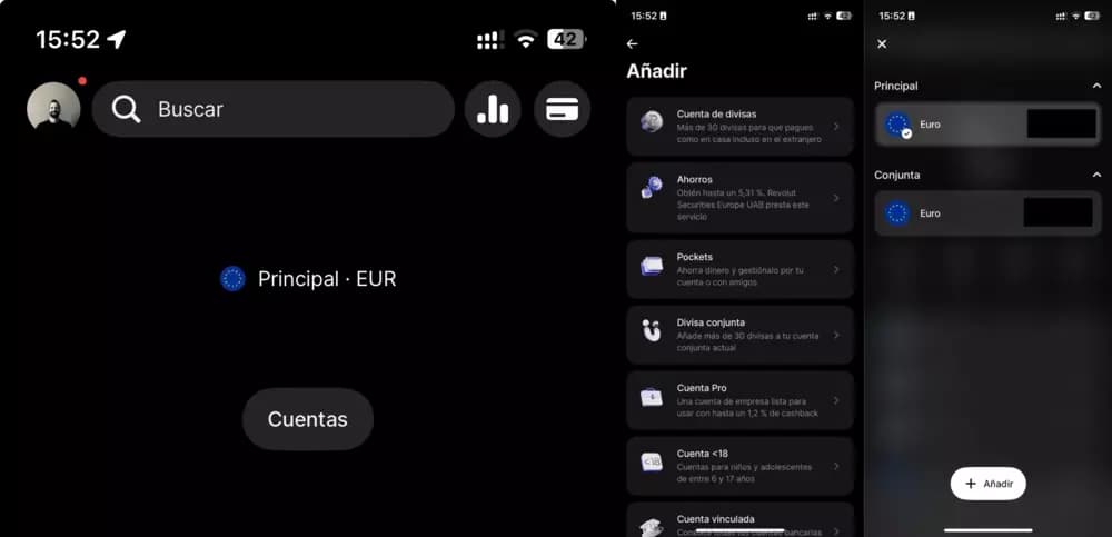 Desde la propia app, tenemos que seleccionar la pestaña de “Cuentas”, que se encuentra justo debajo de nuestro saldo. Una vez accedamos a esta opción, tenemos que hacer clic en el botón de “Añadir” y, a continuación, seleccionar “Cuenta conjunta”, que aparecerá en el listado de posibilidades.