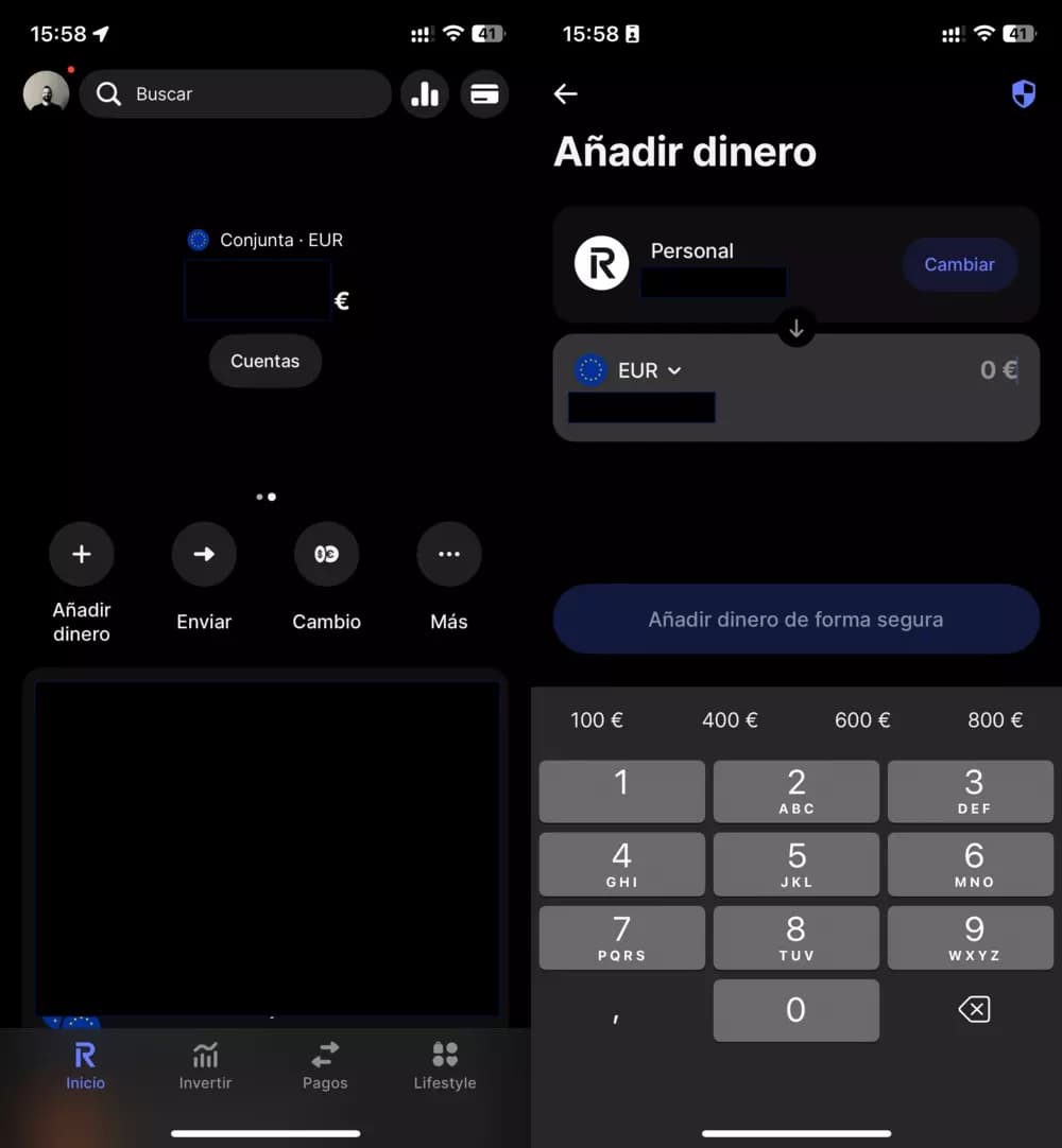 Una vez tenemos la cuenta conjunta habilitada, y ambos participantes han aceptado la invitación, el siguiente paso es añadir dinero. Revolut ha simplificado al máximo este proceso para que apenas tengamos que dar un par de toques a la hora de poder añadir fondos a la misma por parte de ambos usuarios.