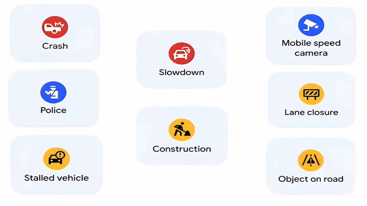 Según la nueva funcionalidad, Google Maps diferenciará entre ocho diferentes accidentes, cada uno con su propio icono y color: