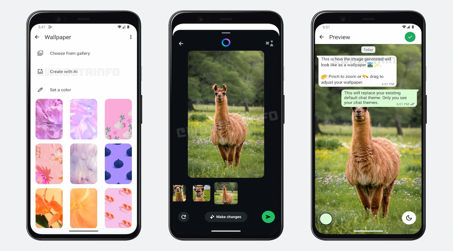 La aparición de la Inteligencia Artificial ha propiciado que se puedan realizar tareas en cuestión de segundos, cuando antes podíamos tardar una eternidad, así que Meta AI no ha querido ser la excepción y muy pronto va a permitir a sus usuarios solicitar la creación de fondos de pantalla que se ajustarán automáticamente al tamaño de la misma. Para ello, será tan sencillo como aportar una breve descripción dentro del chat para que Meta AI comience a procesar varias imágenes y elijamos la opción que más se adapte a nuestros gustos. Al acceder a la interfaz de selección de fondos, la IA mostrará los que se hayan generado acorde a tu petición y se podrán aplicar tanto en conversaciones individuales como grupales.