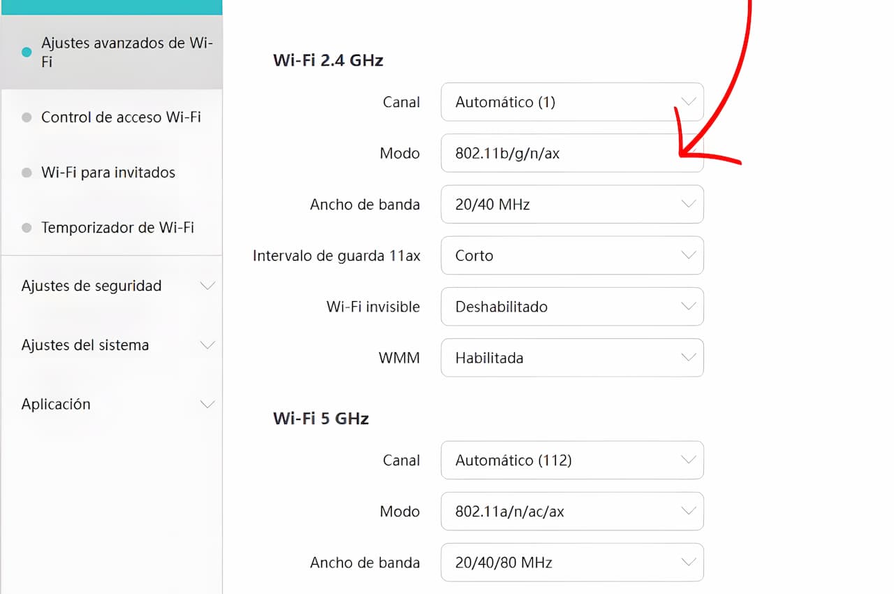 Dentro deberás cambiar la configuración para que solo incluya la conexión WiFi 4 (802.11n) o versiones posteriores. Es decir, tendrás que desactivar cualquier casilla que indique 802.11b o 802.11g. Cabe señalar que hay algunos routers que no permiten deshabilitar estos estándares antiguos. Una vez hayas seguido estos pasos, guarda los cambios y apaga, espera 15 segundos y vuelve a encender el router para que se apliquen correctamente.