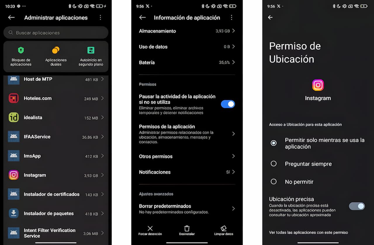 En el caso de que no quieras que tu ubicación se comparta, deberás escoger la opción de compartir con «Nadie». Otro método para evitar que la red social indique dónde estas en tiempo real es quitar los permisos de tu ubicación a través de los ajustes de tu móvil. Para ello, accede a la app Instagram desde la configuración del smartphone y busca la sección de «Permisos», «Permisos de la aplicación» o algo parecido. Después, accede a «Ubicación» e indica que no quieres compartirla con esa plataforma en cuestión.