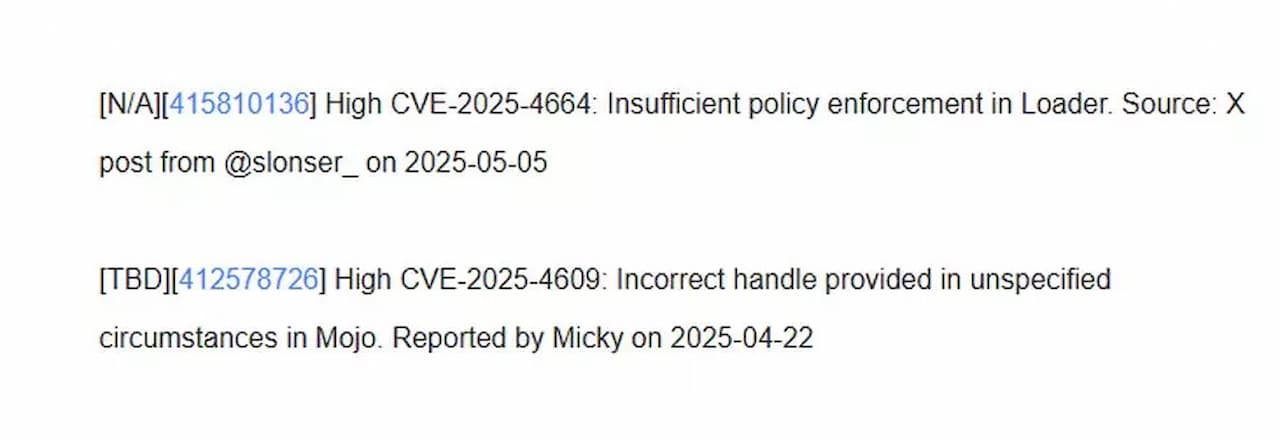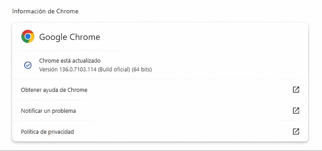 Tal y como la empresa indica, se trata de dos vulnerabilidades de riesgo alto y están identificadas con los nombres de CVE-2025-4664 y CVE-2025-4609. Además, la compañía también ha dicho que, de forma interna, han descubierto otras dos vulnerabilidades que también han parcheado con esta actualización. Si quieres saber si tu navegador ya está actualizado y protegido, lo único que tienes que hacer es consultar la versión en la que se encuentre. La versión parcheada es la 136.0.7103.113/114 tanto en Windows como en macOS y la 136.0.7103.113 en aquellos equipos que tengan Linux. Por su lado, los usuarios de dispositivos Android tienen que comprobar que ya disponen de la versión 136.0.7103.125. Si tu equipo no se ha actualizado, lo único que tienes que hacer es pulsar en los tres puntitos del navegador, luego elegir Ayuda y seleccionar finalmente Información de Google Chrome. En ese momento el navegador se tratará de actualizar en el caso de haber una nueva versión que no se haya actualizado automáticamente.