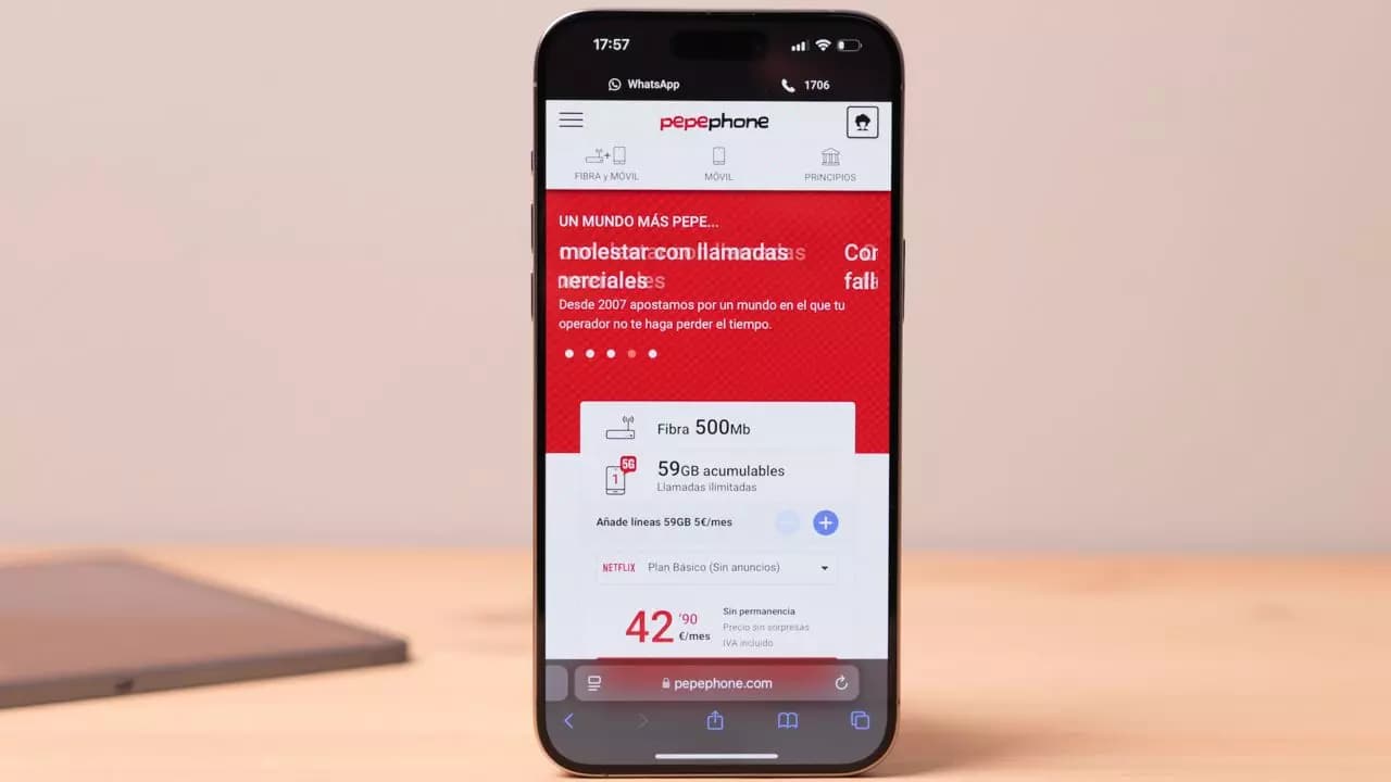 Pepephone acaba de eliminar su tarifa más económica de fibra y móvil por 30 € mensuales. El plan ofrecía 300 Mbps para la conexión a Internet y una línea con 50 GB de datos, pero ya no está disponible en la web. Con este movimiento, la operadora sigue los pasos de O2, que recientemente borró la opción con menos velocidad de red de su catálogo.