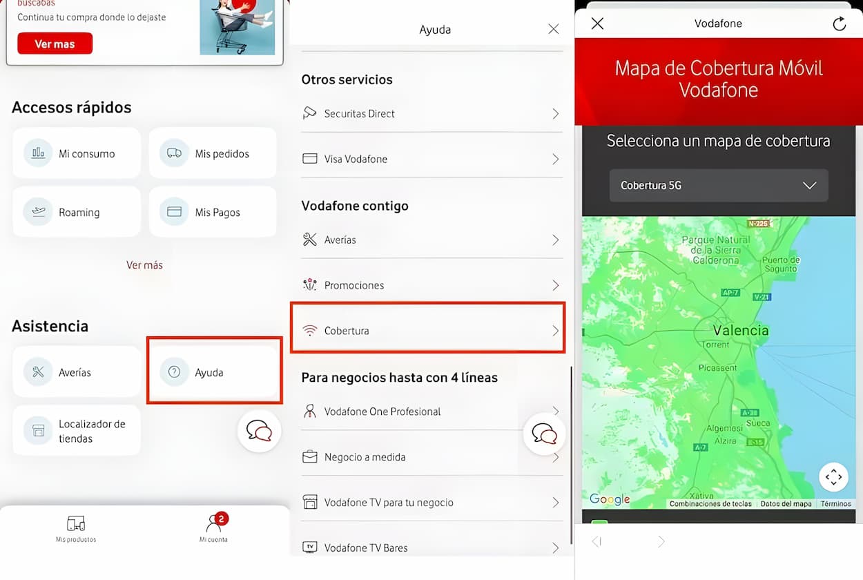 3 | Verifica la cobertura en el mapa oficial. | App Mi Vodafone / Web |