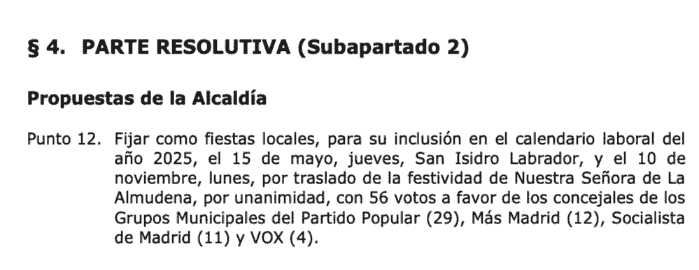 Este traslado de festivo local es posible gracias al marco que ofrece el artículo 37.2 del Estatuto de los Trabajadores, que permite modificar las fiestas locales que coinciden en domingo. No obstante, es importante que sepamos diferenciarlo del calendario laboral autonómico (Decreto 93/2024 del BOCM), que no incluye este día.