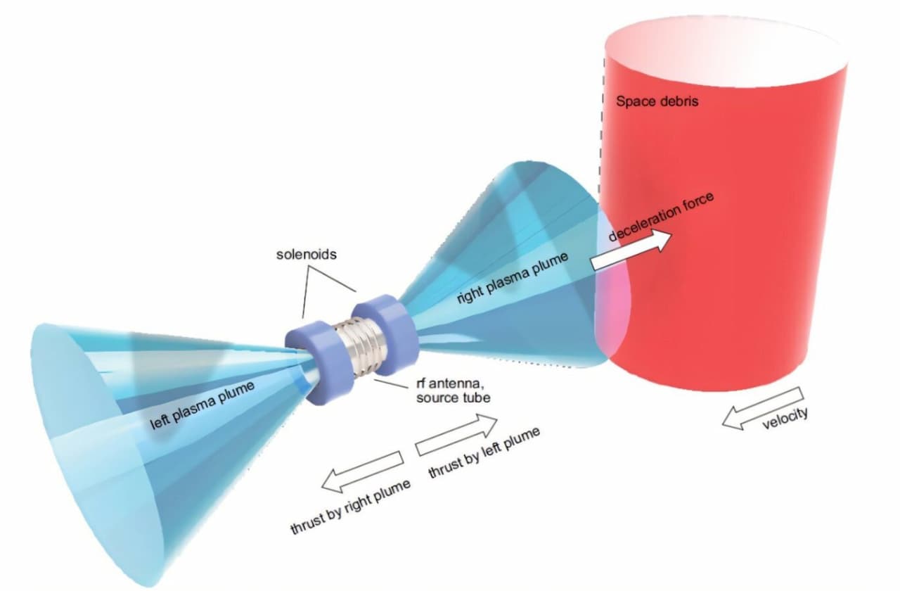 Tal y como el propio Takahashi lo ha denominado, se trata de un sistema que utilizaría un “propulsor de plasma sin electrodos de tipo de eyección de plasma bidireccional” para hacer la eliminación de los restos. De manera menos técnica, de lo que trata la idea de Takahashi es de diseñar satélites que, en vez de un solo escape, dispongan de dos unidades. Esta sería la clave del funcionamiento de estos satélites que, una vez entraran en acción, lo que harían sería poner en marcha los escapes en direcciones opuestas.