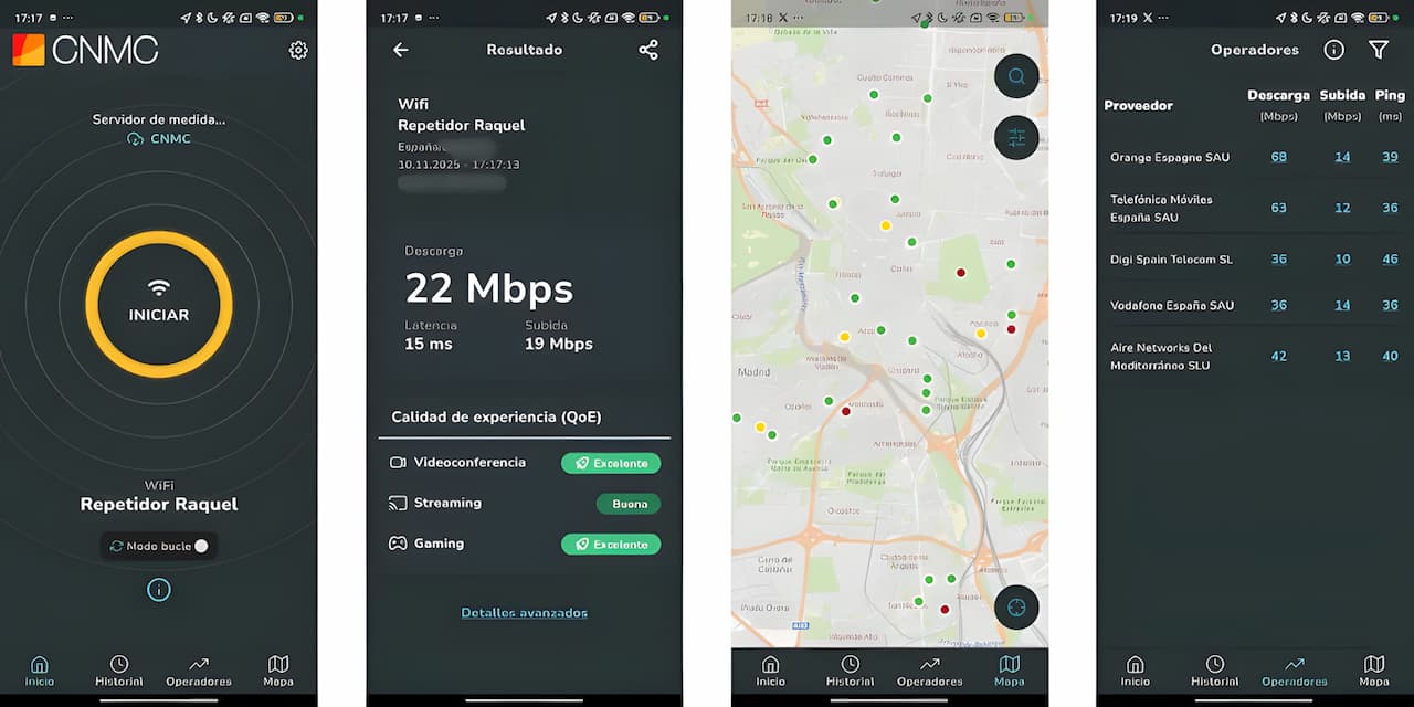 Se trata de una plataforma desarrollada por el Ministerio de Transformación Digital y Función Pública, que evalúa con la CNMC la calidad de servicio y velocidad de la red a la que esté conectado el dispositivo. Está disponible en la App Store (iOS) y en Google Play Store (Android), aunque todavía está en fase de pruebas.