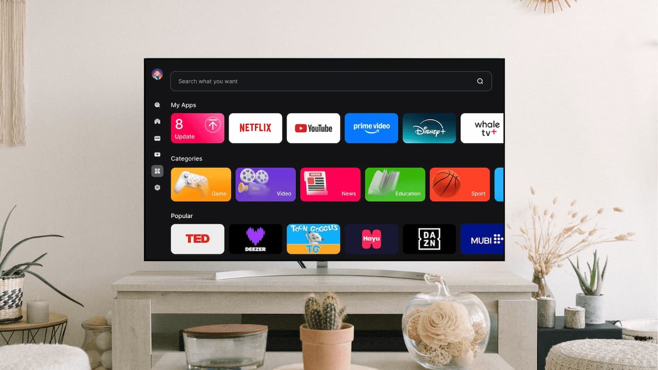Al tratarse de una app que únicamente funciona en televisores inteligentes, lo primero que tendrás que hacer para probarla es instalarla desde la tienda oficial de aplicaciones de tu Smart TV. Whale TV+ está disponible en Google Play Store, en la App Store de Apple TV, en las televisiones Samsung, en las de LG y en dispositivos con Fire TV. Una vez instalada, podrás acceder a los 120 canales disponibles en España y a su contenido bajo demanda sin necesidad de registrarte.