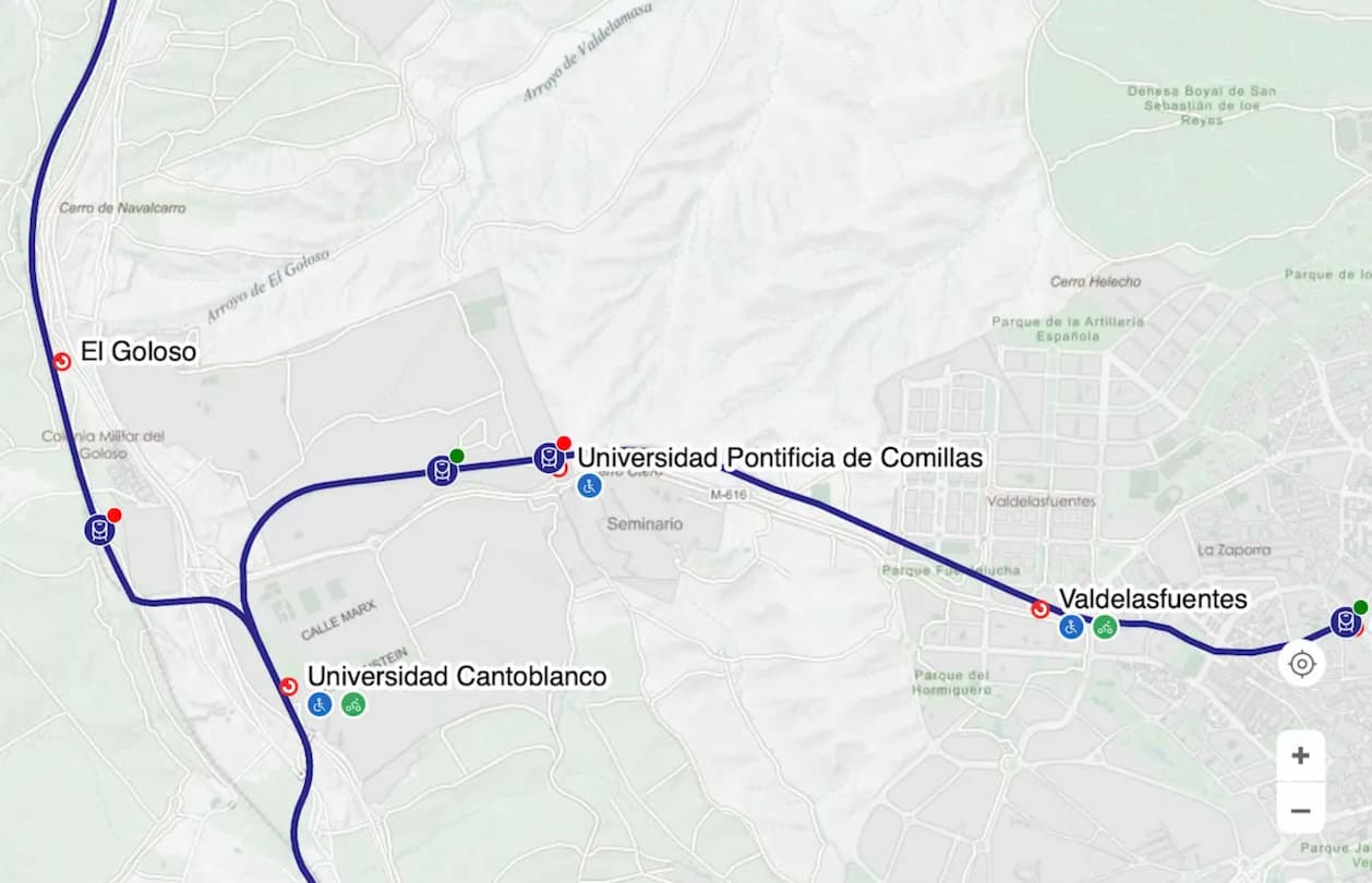 Por un lado, una vista general con la que el usuario podrá observar el estado de la red en cada momento, viendo el «punto» o icono de los trenes moviéndose por sus respectivas líneas. Por otro lado, una vista específica, en la que el usuario puede seleccionar una única línea o estación. Al hacerlo, se obtiene mucha información detallada.